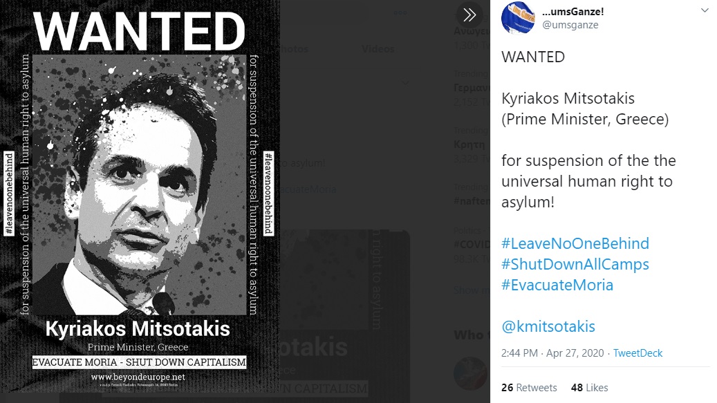 Ειδικά για τον Μητσοτάκη αναφέρεται ότ καταζητείται επειδή κατάργησε το ανθρώπινο δικαίωμα του ασύλου.