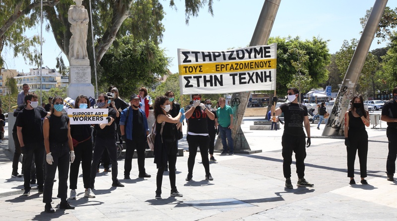 Με γάντια, μάσκες και με τις απαραίτητες αποστάσεις όπως απαιτείται, ο καλλιτεχνικός κόσμος της χώρας έχει βγει στους δρόμους, ανταποκρινόμενος στο κάλεσμα των σωματείων εργαζομένων στις Τέχνες (Πανελλήνιος Μουσικός Σύλλογος, Σωματείο Ελλήνων Ηθοποιών, Σωματείο Εργαζομένων στο Θέαμα – Ακρόαμα, Πανελλήνιο Σωματείο Ελλήνων Τραγουδιστών), ζητώντας από την κυβέρνηση να λάβει ουσιαστικά μέτρα για τη στήριξή τους.