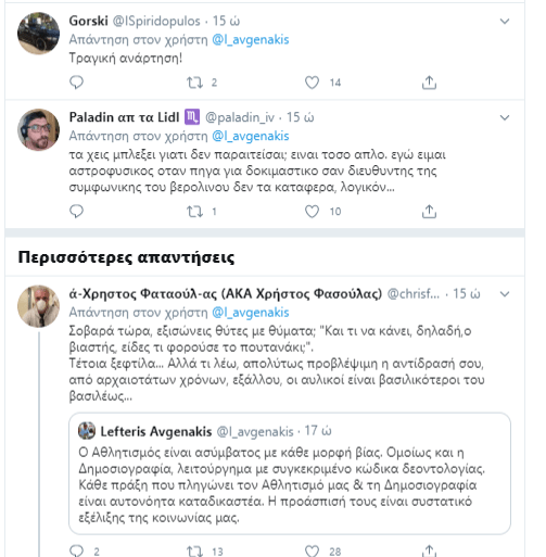 «Ο Αθλητισμός είναι ασύμβατος με κάθε μορφή βίας. Ομοίως και η Δημοσιογραφία, λειτούργημα με συγκεκριμένο κώδικα δεοντολογίας. Κάθε πράξη που πληγώνει τον Αθλητισμό μας & τη Δημοσιογραφία είναι αυτονόητα καταδικαστέα. Η προάσπισή τους είναι συστατικό εξέλιξης της κοινωνίας μας» έγραψε στο twitter ο επικεφαλής της κυβέρνησης στον τομέα του αθλητισμού.