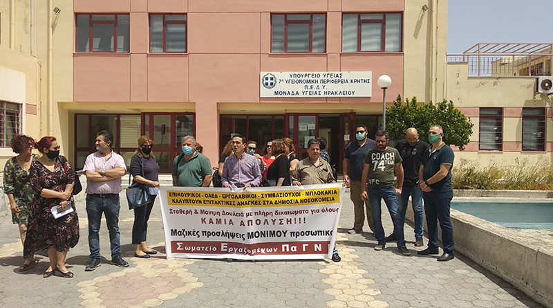 Στα πλαίσια της 4ωρης στάσης εργασίας της ΠΟΕΔΗΝ, αντιπροσωπεία του ΔΣ του Σωματείου Εργαζομένων ΠαΓΝΗ πραγματοποίησε συμβολική συγκέντρωση στα γραφεία της 7ης ΥΠΕ αντιδρώντας στο νέο χτύπημα, στα δικαιώματα νοσηλευτών και βοηθών νοσηλευτών με τη στοχευμένη διάσπαση του κλάδου στα δύο, στο όνομα της επίσπευσης των προσλήψεων και την «αναβάθμιση» των νοσηλευτών.