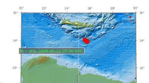 Σεισμική δόνηση 4,1 Ρίχτερ σημειώθηκε στις 8:14 το πρωί στα νότια της Κρήτης. Νωρίτερα, στις 5:30 τα ξημερώματα, είχε σημειωθεί ένας ακόμα σεισμό, 4,6 Ρίχτερ Magnitude mb 4.1 Region EASTERN MEDITERRANEAN SEA Date time 2020-05-16 05:14:05.2 UTC Location 33.90 N ; 25.77 E Depth 40 km Distances 489 km SE of Athens, Greece / pop: 730,000 / local time: 08:14:05.2…