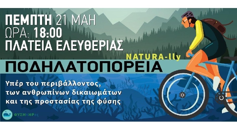 Αυτήν την Πέμπτη, 21 Μαΐου, Ευρωπαϊκή Ημέρα Δικτύου “NATURA 2000”, καλούμε εσάς, τους φίλους σας και τα παιδιά σας σε μια ποδηλατοδρομία για το περιβάλλον, τα ανθρώπινα δικαιώματα και την προστασία της φύσης.