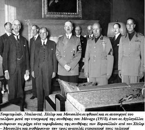 Με τον τρόπο που διαχειρίστηκαν τα ζητήματα (Αυστρίας, Σουδητίας, Ρηνανίας, Τσεχοσλοβακίας,, Αλβανίας, κ.λπ.), τις συνθήκες και συμφωνίες που υπέγραψαν, τις μυστικές διαβουλεύσεις μέχρι και την παραμονή του πολέμου, καλλιέργησαν – πολύ δεν ήθελε! – την πεποίθηση στους Ναζί για την ευκολία με την οποία θα υλοποιούσαν το ιμπεριαλιστικό τους πρόγραμμα.