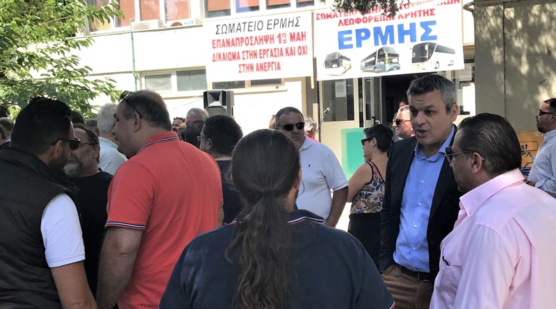 Στη συγκέντρωση διαμαρτυρίας του Σωματείου Οδηγών Τουριστικών Λεωφορείων Κρήτης ΕΡΜΗΣ που πραγματοποιήθηκε το πρωί της Δευτέρας 1 Ιουνίου στο Εργατικό Κέντρο Ηρακλείου, παρευρέθηκε ο Βουλευτής ΣΥΡΙΖΑ ν. Ηρακλείου Χάρης Μαμουλάκης.