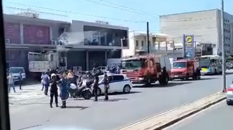 Μάλιστα, το φορτηγό χτύπησε και δύο επαγγελματικά φορτηγάκια της εταιρείας.