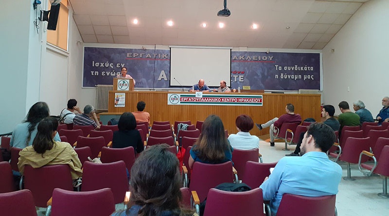 Με επιτυχία πραγματοποιήθηκε χθες η σύσκεψη που είχε καλέσει το Συνδικάτο Οικοδόμων Ν. Ηρακλείου στο Εργατικό Κέντρο. Ο πρόεδρος του συνδικάτου, στην τοποθέτησή του αναφέρθηκε στην επίθεση που εξαπολύεται από το κεφάλαιο και το πολιτικό του προσωπικό με αφορμή την πανδημία του κορονοϊού.