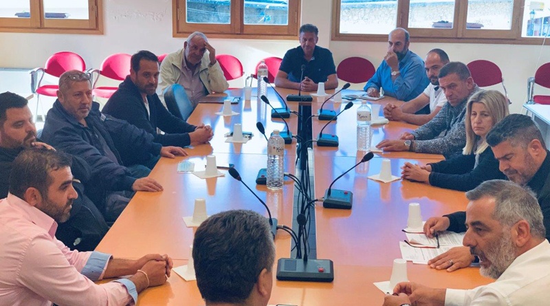 Σύσκεψη με τον Δήμαρχο Οροπεδίου Λασιθίου Γιάννη Στεφανάκη, Αντιδημάρχους και αιρετούς της Δημοτικής Αρχής, είχε στο Τζερμιάδων στην αίθουσα του Δημοτικού Συμβουλίου, ο Περιφερειάρχης Κρήτης Σταύρος Αρναουτάκης.