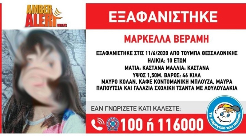 Θετικά είναι τα νέα για την 10χρονη Μαρκέλλα που είχε εξαφανιστεί στη Θεσσαλονίκη, καθώς εντοπίστηκε το πρωί του Σαββάτου.