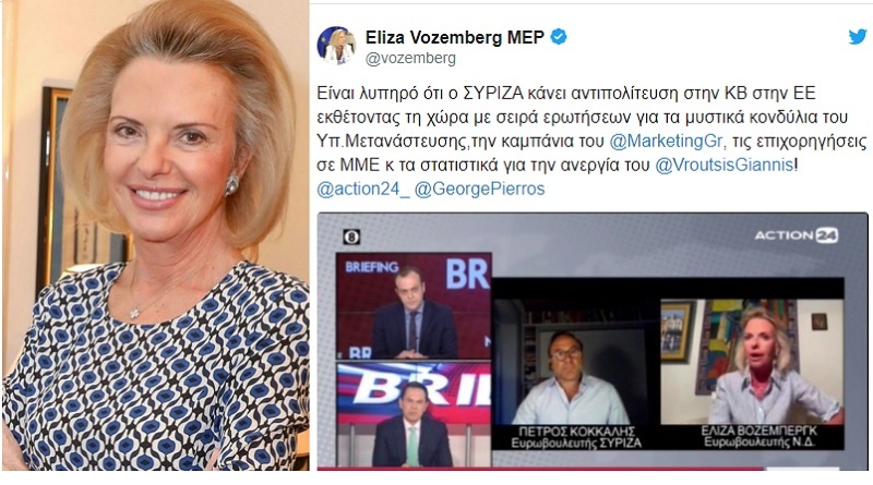 Η ευρωβουλευτής της ΝΔ, Ελίζα Βόζεμπεργκ, με ανάρτησή της στο twitter, καταγγέλλει τον ΣΥΡΙΖΑ ότι… δημοσιοποιεί στην ΕΕ τις λαμογιές και τα σκάνδαλα της κυβέρνησης! Ναι, δεν είναι πλάκα, δείτε και γελάστε ελεύθερα!