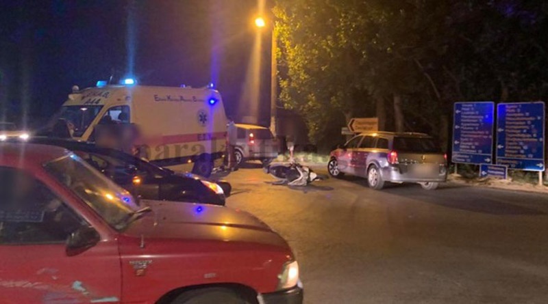 Οι αναβάτες μίας μοτοσικλέτας, ένα ζευγάρι Σουηδών, τραυματίστηκαν μετά από σύγκρουση με άλλο όχημα στη διασταύρωση και χρειάστηκε να μεταφερθούν με ασθενοφόρο του ΕΚΑΒ στο νοσοκομείο Χανίων.
