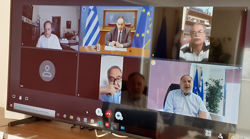 Ο Πρόεδρος κ. Γ. Κουράκης και τα μέλη της ΕΕ της ΠΕΔ Κρήτης, κκ. Γ. Μαρινάκης, Γ. Μαλανδράκης, Μ. Κοκοσάλης και Ν. Κοκκίνης συμμετείχαν σε τηλεδιάσκεψη με τον Υπουργό Ναυτιλίας και Νησιωτικής Πολιτικής κ. Γ. Πλακιωτάκη, τον Γενικό Γραμματέα Ναυτιλίας και Λιμενικών Υποδομών κ. Ε. Κυριαζόπουλο, τον Ειδικό Σύμβουλο του Υπουργού κ. Μ. Κουτουλάκη και τον Διευθυντή της Λιμενικής Αστυνομίας Πλοίαρχο κ. Χ Μαρουλάκης.