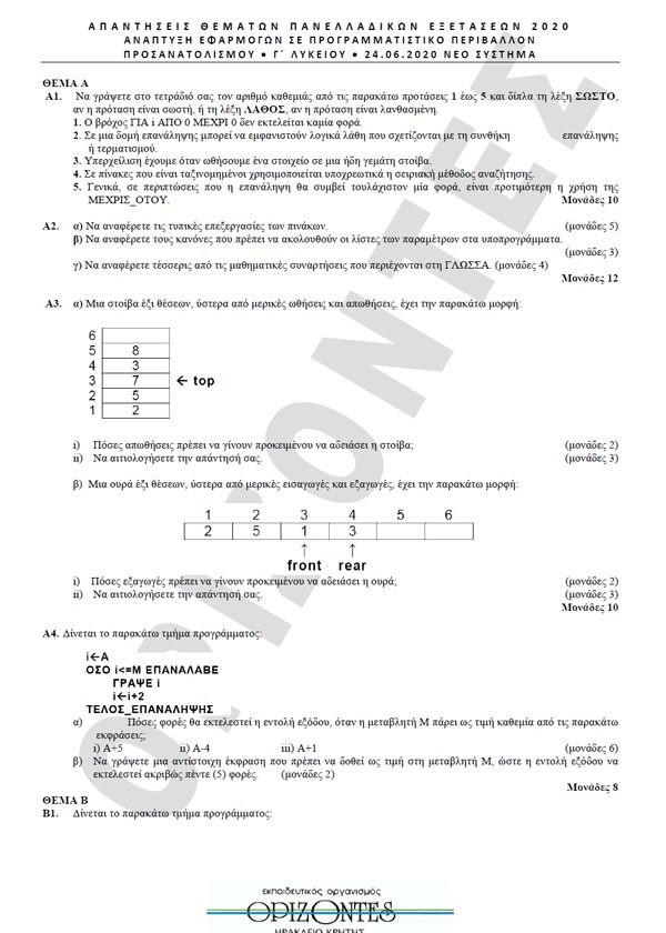 ΑΠΑΝΤΗΣΕΙΣ ΘΕΜΑΤΩΝ ΠΑΝΕΛΛΑΔΙΚΩΝ ΕΞΕΤΑΣΕΩΝ 2020