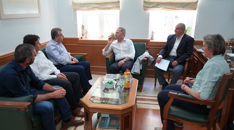 Με τον Πρόεδρο του ΕΛΓΟ ΔΗΜΗΤΡΑ Σέρκο Χαρουτουνιάν είχε συνάντηση σήμερα ο Περιφερειάρχης Κρήτης Σταύρος Αρναουτάκης παρουσία του Αντιπεριφερειάρχη πρωτογενή τομέα Μανόλη Χνάρη, του Αντιπεριφερειάρχη Ηρακλείου Νίκου Συριγωνάκη, του Διευθύνοντος Συμβούλου ΕΛΓΟ ΔΗΜΗΤΡΑ Παναγιώτη Χατζηνικολάου και της Διευθύντριας του Ινστιτούτου Ελαίας-Αμπέλου-Υποτροφικών Φυτών ΕΛΓΟ ΔΗΜΗΤΡΑ Αναστασίας Τσαγκαράκου.