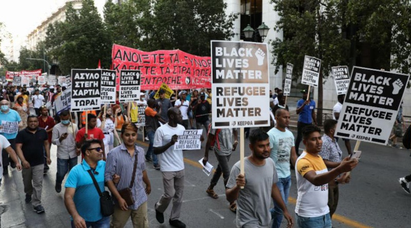 «Black lives matter, refugee lives matter», «Όχι στα στρατόπεδα-φυλακές», «Ανοίξτε τα σύνορα, κλείστε τα στρατόπεδα» έγραφαν μεταξύ άλλων τα πανό και τα πλακάτ των διαδηλωτών που ξεκίνησαν που διαμαρτυρήθηκαν στο Σύνταγμα ζητώντας να μπει φρένο στην ρατσιστική επίθεσης της κυβέρνησης.