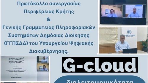Πρωτόκολλο συνεργασίας υπέγραψε η Γενική Γραμματεία Πληροφοριακών Συστημάτων Δημόσιας Διοίκησης (ΓΓΠΣΔΔ) του Υπουργείου Ψηφιακής Διακυβέρνησης με την Περιφέρεια Κρήτης. Το Πρωτόκολλο συνεργασίας εντάσσεται στη συνολικότερη στρατηγική του Υπουργείου Ψηφιακής Διακυβέρνησης για την επιτάχυνση του ψηφιακού μετασχηματισμού του Κράτους, σε όλα τα επίπεδα Διοίκησης, καθώς και της σταδιακής ένταξης του συνόλου των εφαρμογών των δημοσίων φορέων στο ενιαίο κυβερνητικό νέφος (G-Cloud). …