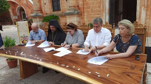Λίνα Μενδώνη και Στ. Αρναουτάκης υπόγραψαν σύμβαση για την προστασία της Μονής Αγ Τριάδας και θα συνεχίσουν και για άλλα Μοναστήρια της Κρήτης Προγραμματική σύμβαση για την εκπόνηση Μελέτης προστασίας και ανάδειξης της Ι. Μ. Αγίας Τριάδας Τζαγκαρόλων, υπογράφηκε σήμερα στην Ιερά Μονή Αγίας Τριάδας Χανίων μεταξύ του Υπουργείου Πολιτισμού και Αθλητισμού, της Περιφέρειας Κρήτης, της Πατριαρχικής και Σταυροπηγιακής Ιεράς…