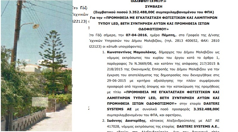 Πρόκειται για τον διαγωνισμό με τον οποίο στην ουσία ο δημοτικός φωτισμός του Μαλεβιζίου εκχωρήθηκε για 8 χρόνια στην εταιρεία DASTERI SYSTEMS A.E.
