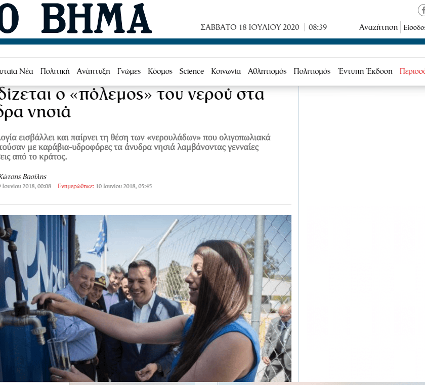 Ακόμα και το “Βήμα” είχε τις σχετικές ειδήσεις