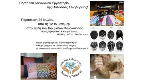 Κλείνοντας τον πρώτο κύκλο λειτουργίας του κοινωνικού μας εργαστηρίου στην Θάλασσα Αλληλεγγύης και κάνοντας μια μικρή καλοκαιρινή διακοπή για να συνεχίσουμε δυναμικότερα τον Σεπτέμβριο, αποφασίσαμε να οργανώσουμε μια ημέρα γιορτής την Παρασκευή 24 Ιουλίου!. Από τις 12 το μεσημέρι μέχρι τις 8 το βράδυ, θα σας περιμένουμε στην αυλή του Κοινωνικού Χώρου των Ιδρυμάτων Καλοκαιρινού (Μονής Αγκαράθου και Κοσμα Ζώτου,…