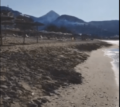 Σας παραθέτω και μια εικόνα που έφτιαξα από το google earth για την οπτική του πράγματος.Επίσης, σας παραθέτω και εικόνα από ένα βίντεο που τράβηξα και φαίνεται καθαρά αυτά τα φουγάρα να “σημαδεύουν” 24 ώρες το 24ωρο τις ΚΑΤΟΙΚΗΜΕΝΕΣ περιοχές Σκαφιδαρά και  Γαζίου μολύνοντας τον αέρα μας με τα βρωμοδηλητήριά τους.  Όλη αυτή η “ασπρίλα” που φαίνεται στις εικόνες από το βίντεο “πίσω από τις ομπρέλες” ΔΕΝ είναι…ομίχλη! Είναι αυτή η βρώμα που μας “προσφέρουν” απλόχερα οι “υπεύθυνοι” (που καθυστερούν τόσα χρόνια το κλείσιμο αυτού του εκτρώματος) για να εισπνέουμε εμείς και τα παιδιά μας!