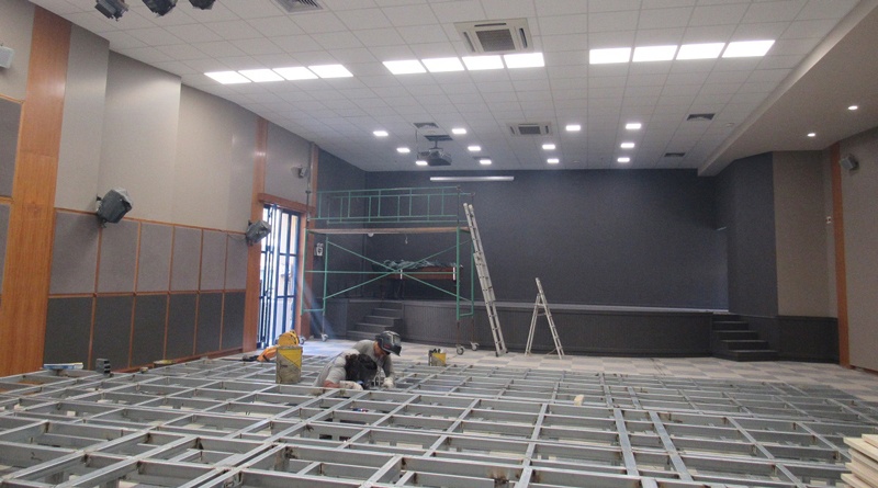 Η σύμβαση που υπεγράφη με την ΔΕΠΑΝΑΛ τον Απρίλιο προέβλεπε τη δημιουργία αναβαθμών για την τοποθέτηση των καθισμάτων – που φαίνεται να προχωρούν με γοργούς ρυθμούς- την επένδυση του υπερυψωμένου πατώματος και των αναβαθμών, την αποξήλωση υφιστάμενων καθισμάτων, την αντικατάσταση του υφιστάμενου υφάσματος των καθισμάτων με ηχοαπορροφητική επένδυση και την επανατοποθέτησή τους στις νέες θέσεις πάνω στους αναβαθμούς. Επίσης προβλέπεται η καθαίρεση της υφιστάμενης ψευδοροφής της αίθουσας και τοποθέτηση νέας και τέλος η επένδυση με laminate του πατώματος της αίθουσας.