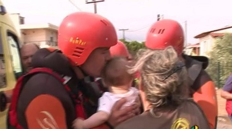 Αναφερόμενος στη διάσωση του μωρού, περιέγραψε ότι “είδα μία κυρία στη βεράντα να καλεί σε βοήθεια, οι χείμαρροι ήταν πάρα πολύ δυνατοί και ρισκάραμε με ένα μηχάνημα του δήμου που ήταν εκεί και κάναμε τη διάσωση”. Όπως είπε, “ήταν στο δεύτερο όροφο, ήταν ψηλό το σπίτι. Ήταν η πρώτη διάσωση που κάναμε αυτή με το μωρό. Ήταν ήδη ημέρα, βλέπαμε”.