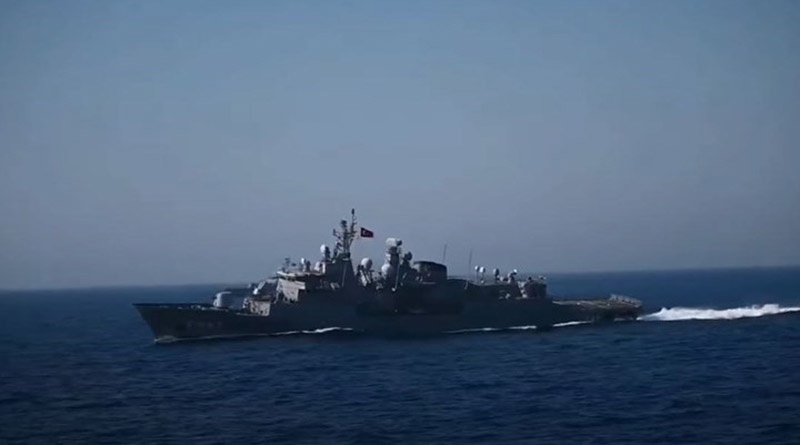 Στο βίντεο, που έδωσε στο φως της δημοσιότητας το ίδιο το τουρκικό υπουργείο Εθνικής Άμυνας, φαίνεται η φρεγάτα μπροστά από το σεισμογραφικό Oruc Reis. Το βίντεο δόθηκε προφανώς σε μια προσπάθεια να πείσουν ότι το καράβι είναι αξιόπλοο.