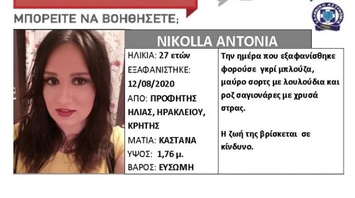 Read MoreΗράκλειο: Χάθηκε 27χρονη εδώ και μια εβδομάδα
