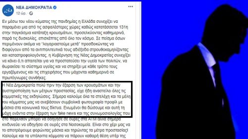 Read MoreΦαιδρότητες αντί πολιτικής: Η ΝΔ βρήκε “λύση” για τον ιό- Φορέστε μάσκες όλοι στα… προφίλ σας!