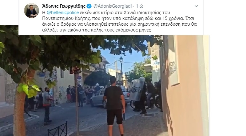 Φυσικά, ο Άδωνης πανηγύρισε για την εισβολή των ΜΑΤ στη κατάληψη της Rosa Nera, στα Χανιά!