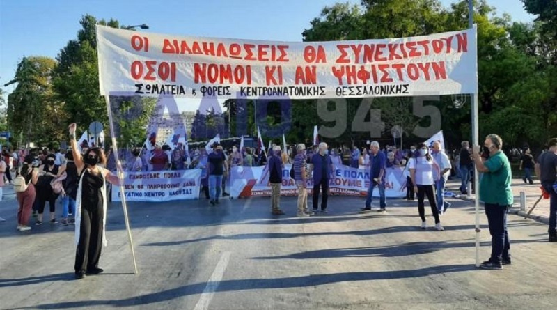 Σύμφωνα με το ΑΠΕ – ΜΠΕ, τα συλλαλητήρια ξεκίνησαν λίγο μετά τις 6 το απόγευμα, στο άγαλμα Βενιζέλου, με πρωτοβουλία της ΑΔΕΔΥ, με τη συμμετοχή, μεταξύ άλλων, ΕΔΟΘ, ΠΟΕΔΗΝ, ΟΛΜΕ, ΔΟΕ, ΠΟΕ-ΟΤΑ, Νεολαία ΣΥΡΙΖΑ, ΛΑΕ, ΚΕΕΡΦΑ, ΟΚΔΕ και φοιτητών) ενώ λίγο αργότερα συγκεντρώθηκαν μέλη του ΠΑΜΕ, στην πλατεία ΧΑΝΘ. Στην Καμάρα έγινε συγκέντρωση από οργανώσεις της εξωκοινοβουλευτικής Αριστεράς και του αντιεξουσιαστικού χώρου. Στο Λευκό Πύργο, από ομάδες και σύλλογοι που εναντιώνονται στα μέτρα αποτροπής εξάπλωσης του κορονοϊού, ενώ άλλη μια συγκέντρωση πραγματοποιήθηκε στο άγαλμα του Μ. Αλεξάνδρου.