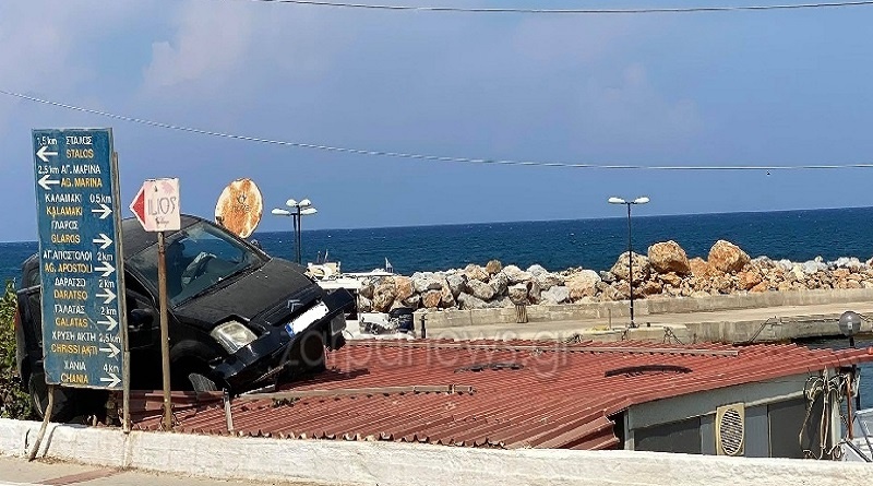 Σε στέγη προσγειώθηκε Ι.Χ αυτοκίνητο που έφυγε από το δρόμο στην παλιά εθνική Χανίων Κισσάμου στο Καλαμάκι.