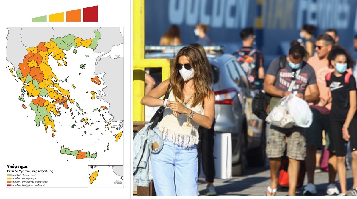 Ο Χάρτης Υγειονομικής Ασφάλειας και Προστασίας από τη λοίμωξη Covid-19 και η ενεργοποίηση της ιστοσελίδας https://covid19.gov.gr , ισχύει από αύριο Δευτέρα 12 Οκτωβρίου. Ο χάρτης περιλαμβάνει τέσσερα επίπεδα προληπτικών μέτρων και κανόνων για κάθε περιφερειακή ενότητα της χώρας. Εντάσσει τις 74 περιφερειακές ενότητες της Ελλάδας σε επίπεδα υγειονομικής ασφάλειας και προστασίας με αντίστοιχες δέσμες μέτρων που ισχύουν για όλους. Πιο συγκεκριμένα εντάσσονται στα εξής επίπεδα : Επίπεδο 1 – Ετοιμότητας, Επίπεδο 2 – Επιτήρησης, Επίπεδο 3 – Αυξημένης Επιτήρησης και Επίπεδο 4 – Αυξημένου Κινδύνου.