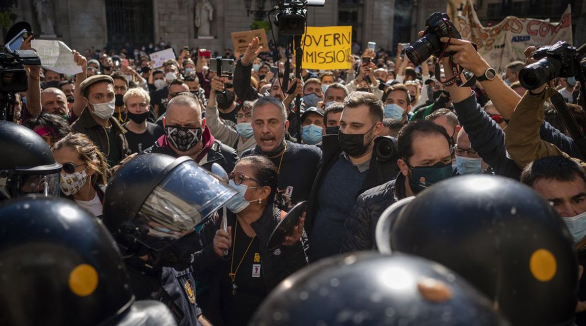 «Θα πεθάνουμε από την πείνα»: Εκατοντάδες διαδηλωτές συγκεντρώθηκαν σήμερα στη Βαρκελώνη για να διαμαρτυρηθούν για το κλείσιμο των μπαρ και των εστιατορίων στην Καταλονία, κατ’ εντολή των αρχών, για να αναχαιτιστεί η εξάπλωση της πανδημίας σε αυτήν την περιοχή της βορειοδυτικής Ισπανίας.
