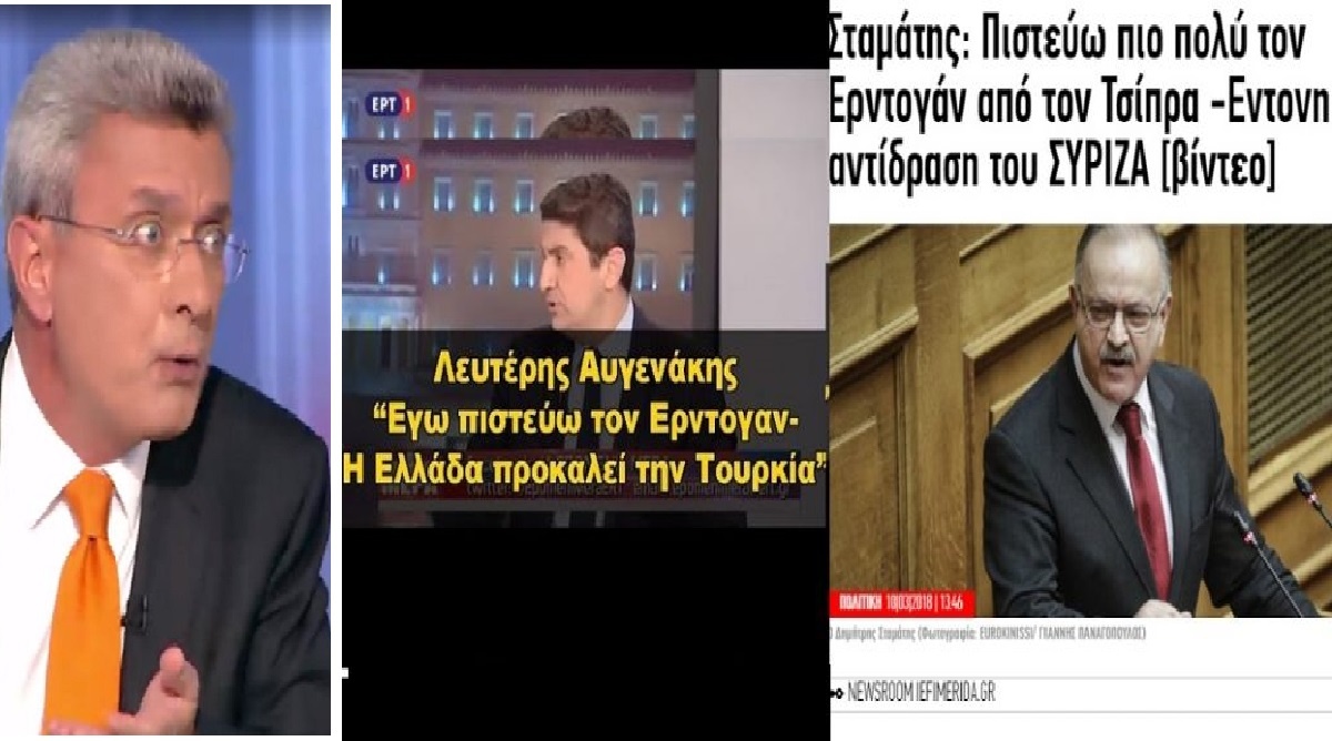 Πάμε μια ακόμα φορά για να θυμηθούμε τους Έλληνες πολιτικούς που στήριζαν τον Ερντογάν, όταν από την ελληνική πλευρά υπήρχε η κυβέρνηση του Αλέξη Τσίπρα. Για να αποδειχτεί πόσο τυχοδιωκτική ήταν η στάση των στελεχών του σημερινού κυβερνητικού κόμματος της ΝΔ και τότε αντιπολιτευόμενου. Ακόμα και τον προκλητικό γείτονα στήριζαν στα εθνικά θέματα, αρκεί να κάνουν αντιπολίτευση!