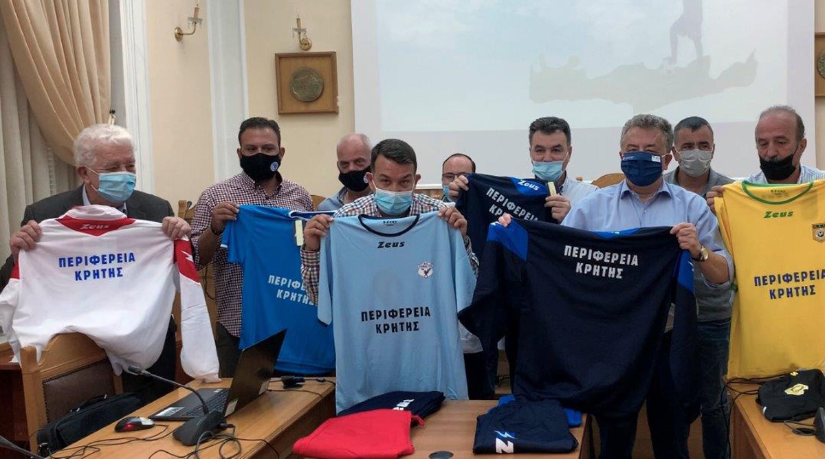 Παραδόθηκαν σήμερα από την Περιφέρεια Κρήτης, οι εμφανίσεις των δεκαέξι ποδοσφαιρικών ομάδων της Κρήτης, οι οποίες αγωνίζονται στη Γ΄ Εθνική Κατηγορία.