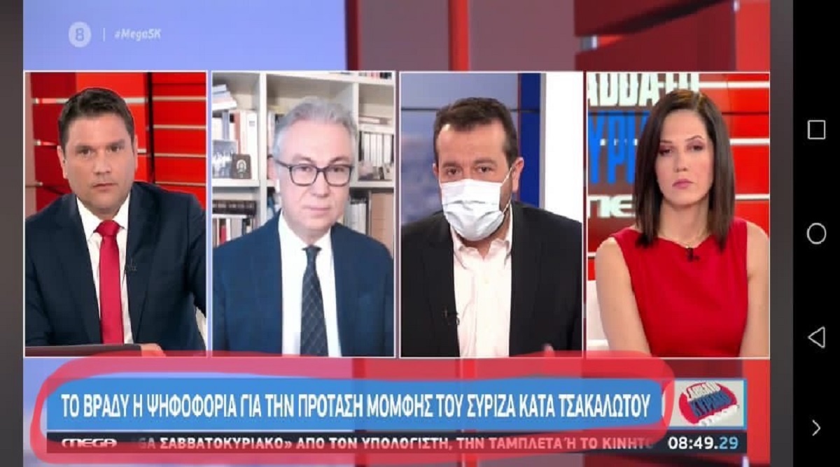 Σε σημερινή του εκπομπή, με τους πρώην υπουργούς, Θοδωρή Ρουσόπουλο και Νίκο Παππά, ο τίτλος, όπως βλέπετε και στην εικόνα, ήταν: “το βράδυ η ψηφοφορία για την πρόταση μομφής του ΣΥΡΙΖΑ κατά Τσακαλώτου”!