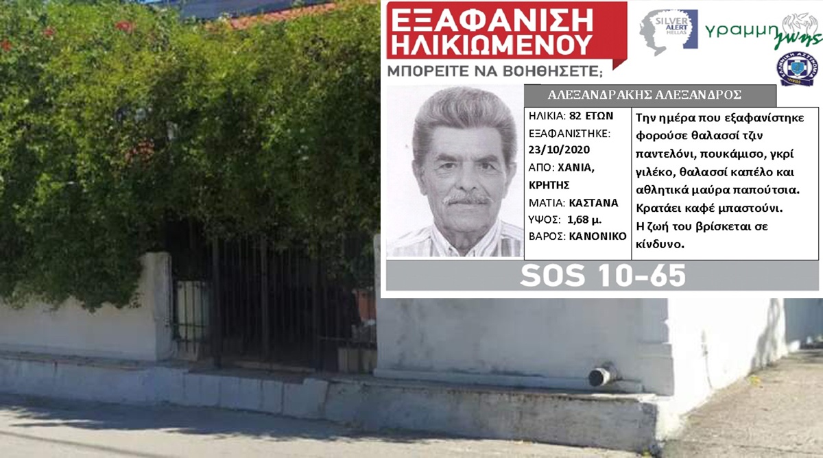Silver Alert εκδόθηκε από την «Γραμμή Ζωής» για τον 82χρονο σύντροφο της 79χρονης που έπεσε θύμα άγριας δολοφονίας στο Πασακάκι Χανίων τα ξημερώματα της Κυριακής.