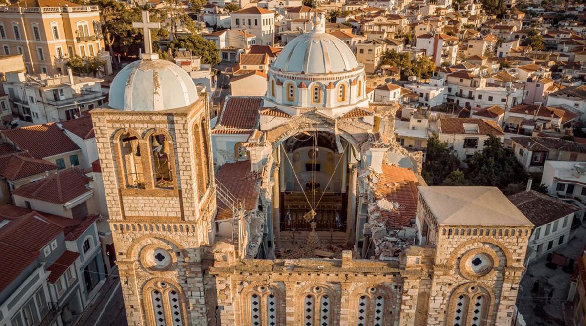 «Κόβει την ανάσα» βίντεο που δείχνει από ψηλά τον μισογκρεμισμένο ναό της Κοιμήσεως της Θεοτόκου στο Νέο Καρλόβασι της Σάμου, το οποίο τράβηξε με τη βοήθεια drone ο Νίκος Χατζηιακώβου.
