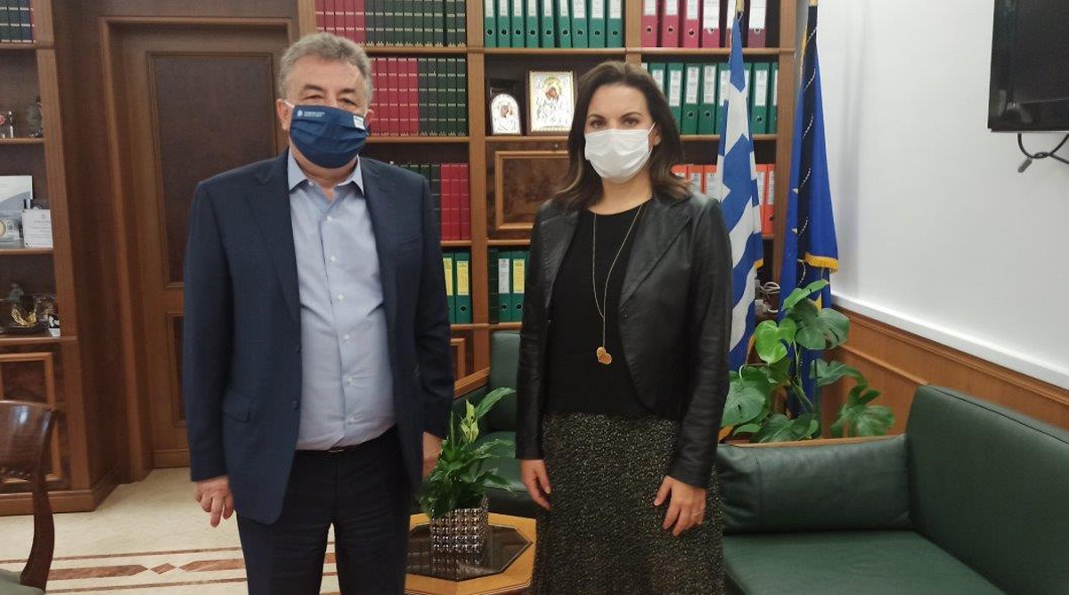 Τα μεγάλα έργα υποδομής και ανάπτυξης της Κρήτης με έμφαση τον ΒΟΑΚ που αποτελεί για την Περιφέρεια Κρήτης επείγουσα προτεραιότητα, συζήτησαν σήμερα σε συνάντηση τους στην Περιφέρεια ο Περιφερειάρχης Κρήτης Σταύρος Αρναουτάκης και η βουλευτής π. Υπουργός Όλγα Κεφαλογιάννη.