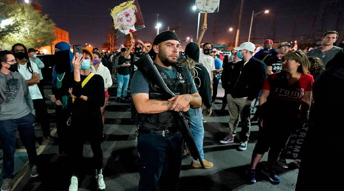 Με τα όπλα στα χέρια οπαδοί του Τραμπ διαδήλωσαν υπέρ του αγαπημένου προέδρου τους, τυλιγμένοι με την αμερικανική σημαία και φωνάζοντας «μετρήστε τις ψήφους», «σταματήστε την κλοπή».