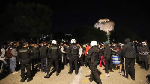 Ένταση και επεισόδια σημειώθηκαν στο χώρο του Λευκού Πύργου και δρόμους του κέντρου της Θεσσαλονίκης, μεταξύ αστυνομικών και αρνητών της χρήσης μάσκας προστασίας από τον κορονοιό. Η συγκέντρωση διαλύθηκε μετά από επέμβαση των αστυνομικών δυνάμεων, που δέχθηκαν πέτρες και μπογιές από διαδηλωτές και απάντησαν με ρίψη δακρυγόνων και κρότου λάμψης. Οι αστυνομικοί απώθησαν τους διαδηλωτές, που κινήθηκαν σε μικρές ομάδες…
