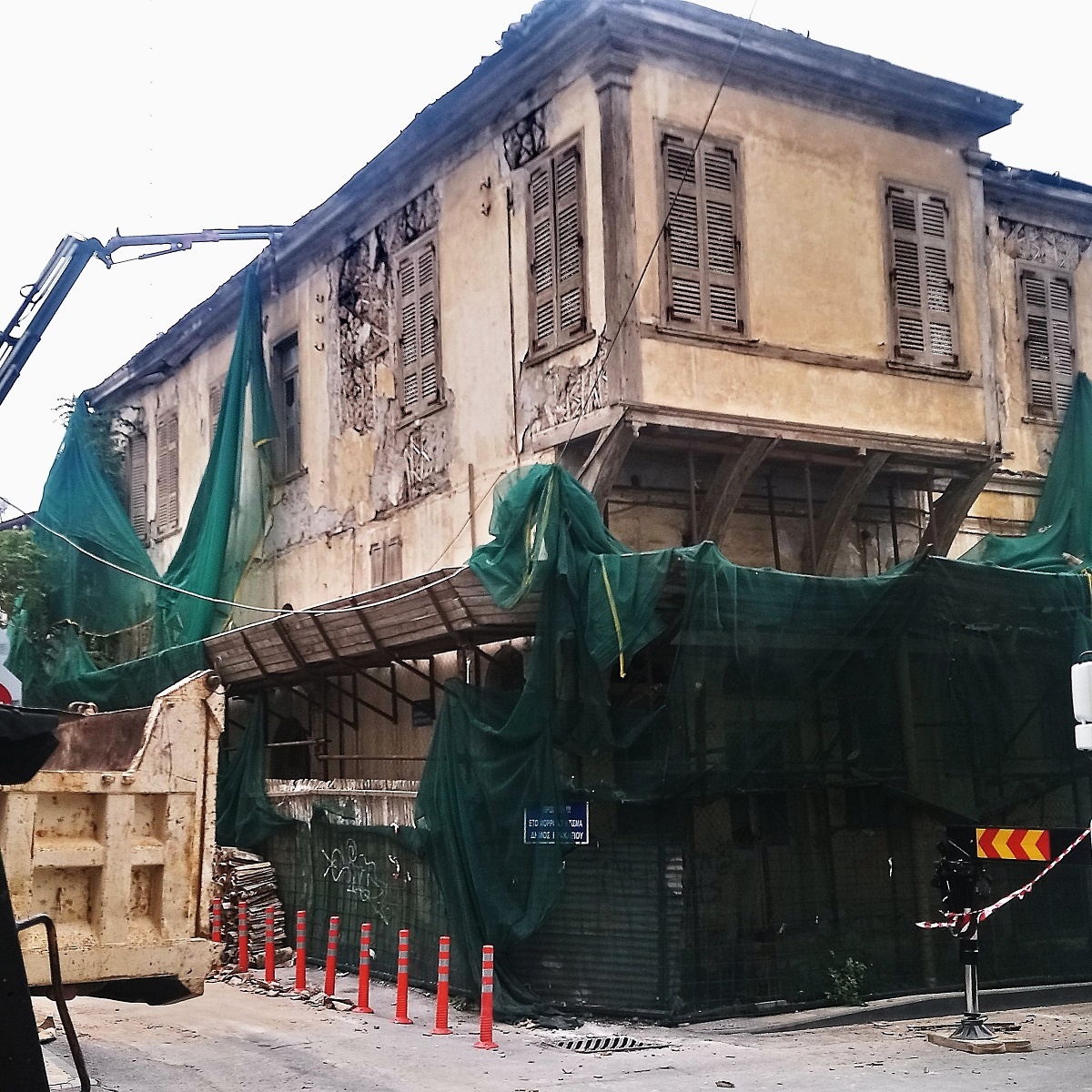 Οι πληροφορίες αναφέρουν ότι συμφώνησε και η αρχαιολογική υπηρεσία στην κατεδάφιση, με σκοπό να παραμείνει μόνο το (ακίνδυνο) ισόγειο…