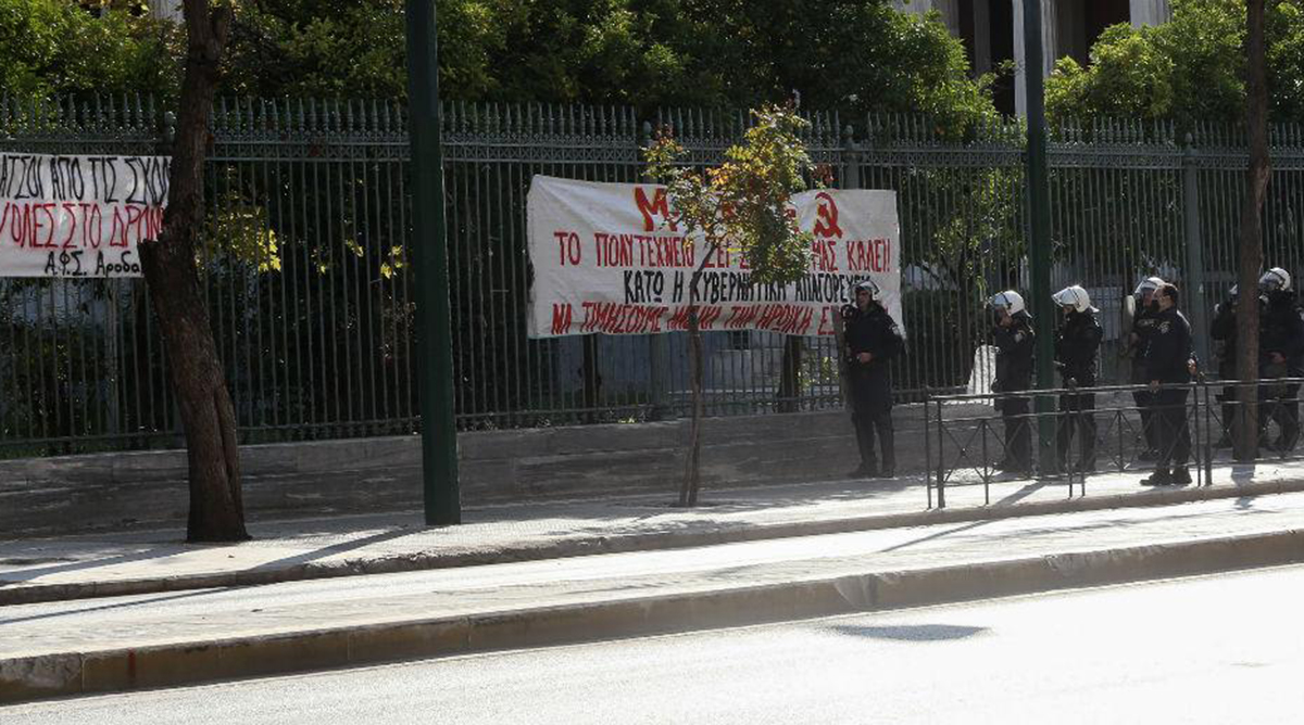 Στο χώρο υπάρχουν ισχυρές δυνάμεις από ΜΑΤ, ΟΠΚΕ, ΔΡΑΣΗ. Επίσης στη γωνία Στουρνάρη και Πατησίων βρίσκεται «αύρα» της αστυνομίας.