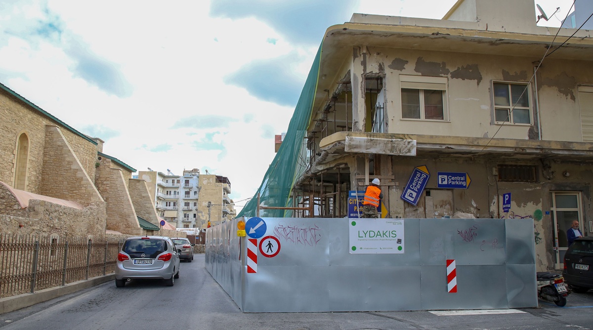 Οι εργασίες αφορούν στην κατεδάφιση του ακινήτου στη συμβολή των οδών Μιτσοτάκη και Χρονάκη, στο πλαίσιο της εφαρμογής του σχεδίου πόλης και την δημιουργία δυο λωρίδων κυκλοφορίας.