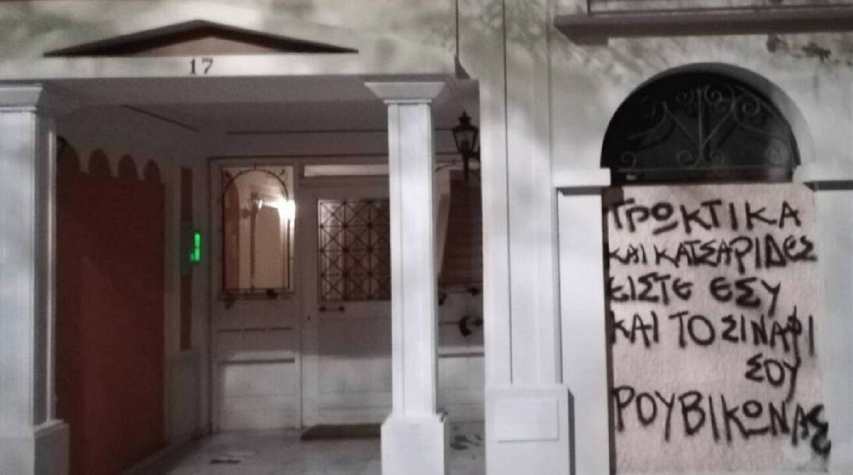 Συγκεκριμένα στον τοίχο του σπιτιού της κ. Έβερτ, τα μέλη της ομάδας έγραψαν «τρωκτικά και κατσαρίδες είστε εσύ και το σινάφι σου», ενώ στη σχετική ανακοίνωσή του ο «Ρουβίκωνας» αναφέρει, μεταξύ άλλων: