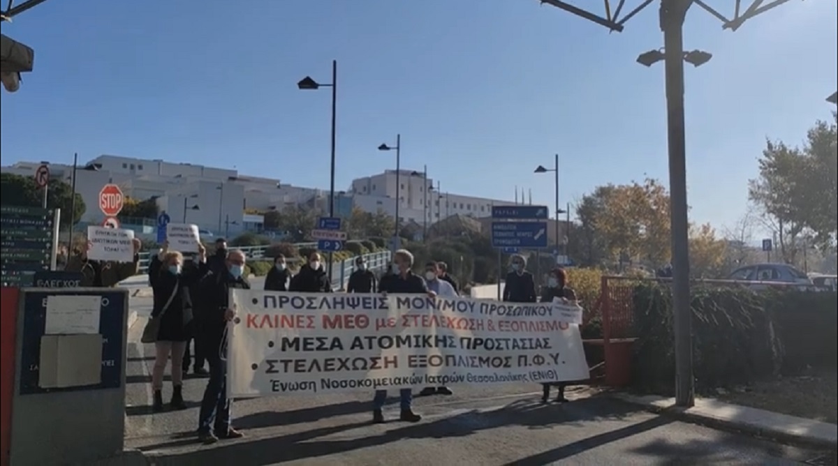Το μέλος του Σωματείου εργαζομένων του νοσοκομείου Παπαγεωργίου Λάμπρος Δερμεντζόγλου τόνισε ότι «Η πραγματικότητα στην υγεία της Θεσσαλονίκης δεν έχει καμία σχέση με την επίπλαστη εικόνα που προσπαθεί να περάσει η κυβέρνηση» για να συμπληρώσει: «Η υγεία στη Θεσσαλονίκη νοσεί και νοσεί βαριά. Δεν υπάρχουν διαθέσιμες κλίνες ΜΕΘ. Τα νοσοκομεία έχουν μετατραπεί σε μονοθεματικά νοσοκομεία Covid και δυστυχώς υπάρχει τεράστιο πρόβλημα για τον πληθυσμό της Ελλάδας».