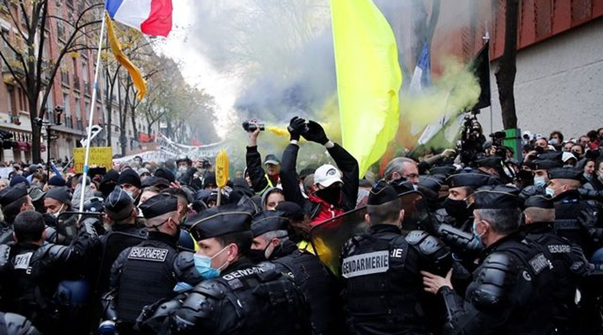 Οι διαδηλωτές έκαναν πορεία στους δρόμους της γαλλικής πρωτεύουσας υπό το βλέμμα των μονάδων αντιμετώπισης ταραχών, κρατώντας πλακάτ που έγραφαν «Γαλλία, γη των δικαιωμάτων των αστυνομικών» και «Απόσυρση του νόμου για την ασφάλεια».