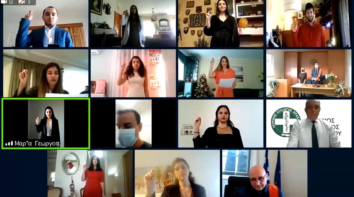 Ο Πρύτανης του Πανεπιστημίου Κρήτης, Καθηγητής Γ. Μ. Κοντάκης, ο Πρόεδρος του Ιατρικού Συλλόγου Ηρακλείου, κ. Χ. Βαβουρανάκης και οι απόφοιτοι μαζί με τους γονείς τους συμμετείχαν διαδικτυακά.
