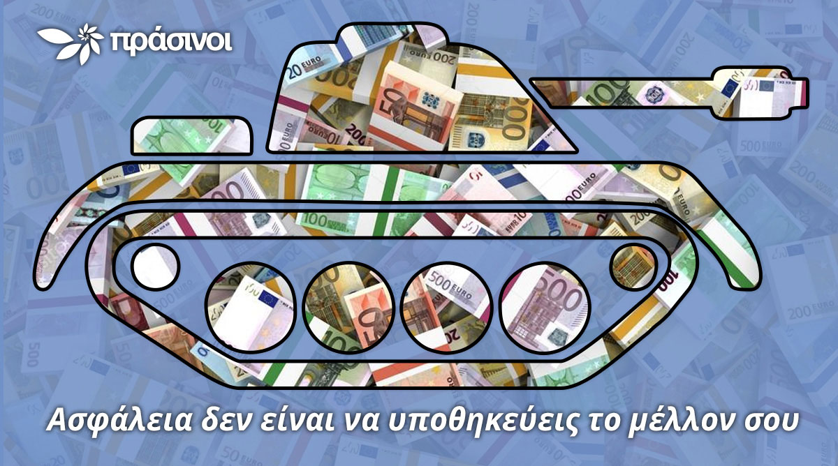Κατηγορηματικά αντίθετοι δηλώνουν οι ΠΡΑΣΙΝΟΙ στην κατακόρυφη αύξηση των εξοπλιστικών και στρατιωτικών δαπανών στον κρατικό προϋπολογισμό του 2021, όπου οι δαπάνες για προμήθειες οπλικών συστημάτων είναι 4-5 φορές μεγαλύτερες από αυτές του 2020. Επισημαίνουν ότι η πραγματική ασφάλεια της κοινωνίας και της χώρας τελικά υπονομεύεται και υποθηκεύεται, όταν η κυβέρνηση και το υπόλοιπο πολιτικό σύστημα εστιάζουν αποκλειστικά στη βραχυπρόθεσμη και στρατιωτική διάσταση.